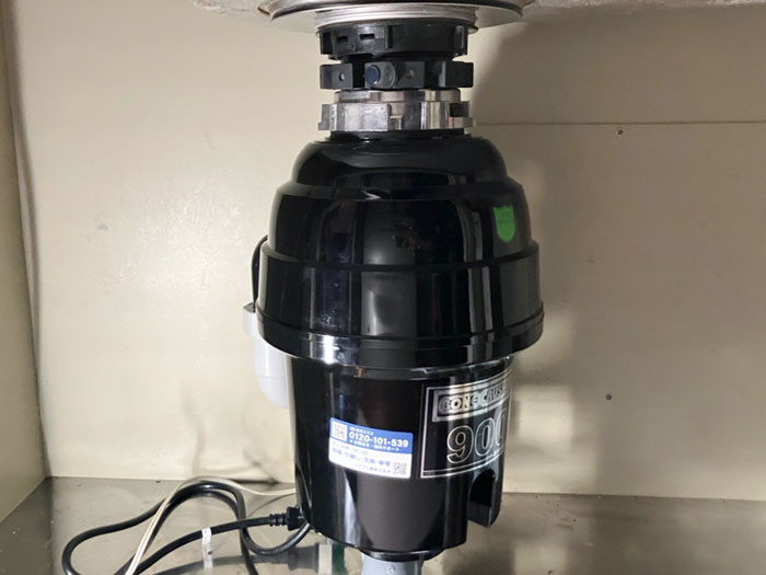 お客様からは「長年使用してきたディスポーザーが動かなくなり、本体の劣化が心配なので早めに交換したい」とのご相談をいただきました。既存機は「シンクマスター950」でしたが、今回は耐久性と静音性に優れた後継機種「ボーンクラッシャー900」への交換をご提案し、設置いたしました。